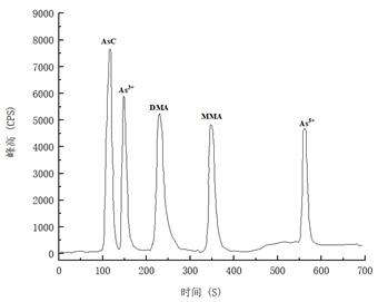 圖4. 5.0μg/L五種砷形態(tài)的混合標(biāo)準(zhǔn)溶液色譜圖