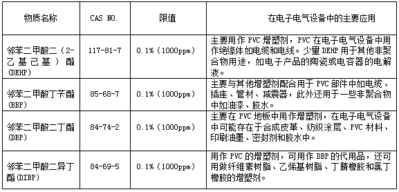 RoHS 2.0是原RoHS指令的升級版,新指令于2019年7月22日起正式實施,并正式將鄰苯二甲酸二(2-乙基己基)酯(DEHP)、鄰苯二甲酸丁芐酯(BBP)、鄰苯二甲酸二丁酯(DBP)和鄰苯二甲酸二異丁酯(DIBP)納入限制物質(zhì)清單中,至此RoHS2.0的管控物質(zhì)達(dá)到10項。