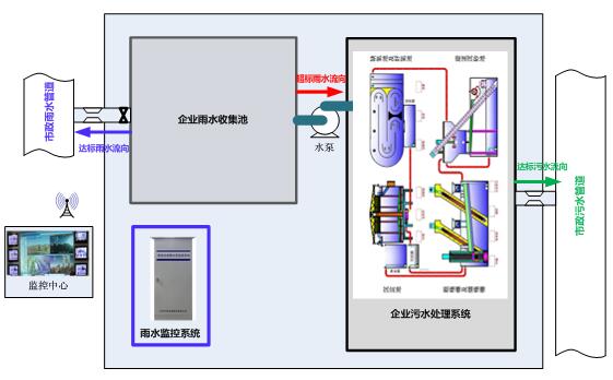 企業(yè)雨水通過專用雨水管路匯總到企業(yè)雨水收集池,在雨水收集池的總排放口監(jiān)測雨水流量。