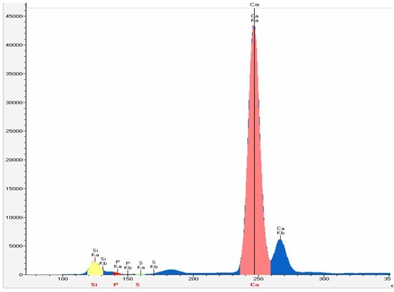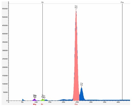 以下使用EDX 3600B型對(duì)白云石國(guó)標(biāo)樣GBW07216A實(shí)際測(cè)試的所得的譜圖,工作曲線(xiàn)等相關(guān)數(shù)據(jù):