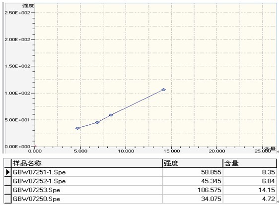③ .白云石國(guó)標(biāo)樣Mg的工作曲線(xiàn)與相關(guān)數(shù)據(jù)