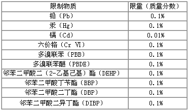 2015年6月4日,歐盟官方公報(bào)(OJ)發(fā)布RoHS2.0修訂指令(EU)2015/863,正式將DEHP、DBP、BBP、DIBP列入附錄Ⅱ限制物質(zhì)清單中,至此附錄Ⅱ共有十項(xiàng)強(qiáng)制管控物質(zhì),詳見(jiàn)下表: