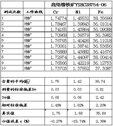 以下使用EDX P730S型對紅鐵礦實際測試的所得的譜圖,工作曲線等相關(guān)數(shù)據(jù):