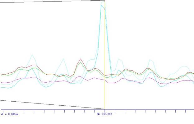 根據(jù)ICP軟件譜線庫提供所有元素不同譜線,首先選擇被測元素靈敏度高的譜線,其次考慮不受樣品基體及被測元素相互之間干擾小的譜線的原則,選擇分析線如下。