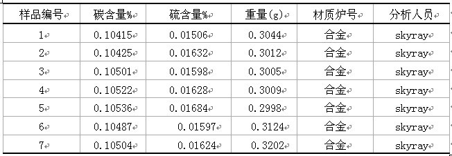 試驗數(shù)據(jù)表明:高頻紅外碳硫儀CS-168型測試有色金屬及合金中的碳硫含量,結(jié)果準確,且重復性好,簡單,快速??梢詮V泛的應用在各種各樣的合金樣品中。