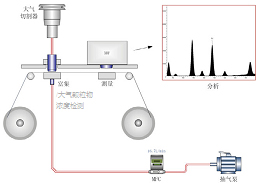 儀器以恒定的工況流量將空氣吸入顆粒物切割器中,以PM2.5為例,動力學(xué)直徑在2.5um附近及以下的顆粒污染物進(jìn)入到儀器的富集系統(tǒng)中。經(jīng)過一段時間的富集后,富集系統(tǒng)自動切換成β射線分析系統(tǒng),利用β射線的衰減與顆粒物的質(zhì)量濃度成指數(shù)的關(guān)系,對顆粒物的質(zhì)量濃度進(jìn)行分析。然后卷膜系統(tǒng)地將富集有空氣顆粒物的濾紙移動到X射線熒光分析系統(tǒng),分別利用X射線熒光的能量和強(qiáng)度對顆粒物中的元素成分進(jìn)行定性和定量的分析。