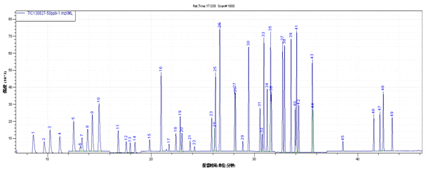 圖4. 54種揮發(fā)性有機物的選擇離子監(jiān)測模式圖(SIM)